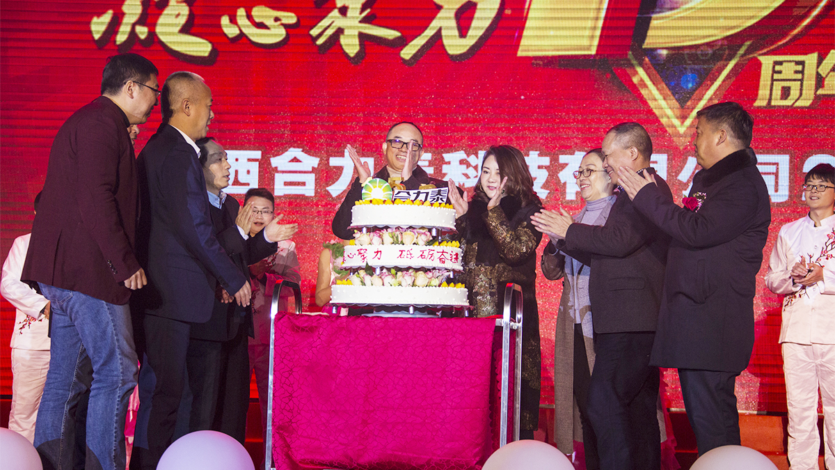 《十五載成長,恩情永不忘》生日慶祝環節更是將當晚的氣氛推向了高潮。晚會播放了合力泰十五年發展歷程電子相冊,一張張或熟悉或陌生的面孔、一個個零的突破、一次次新的跨越,讓我們重新回顧了公司一步步走來的歷程,此情此景,讓每個合力泰人都心潮澎湃。文開福董事長攜高管團隊共同上臺唱響生日歌、切蛋糕,分享公司十五周年的精彩與喜悅。