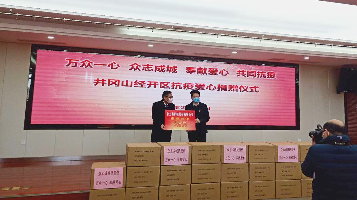 同日,合力泰還向信豐縣慈善會捐贈2萬只一次性醫(yī)用口罩,用于支持信豐縣復工企業(yè)之急。